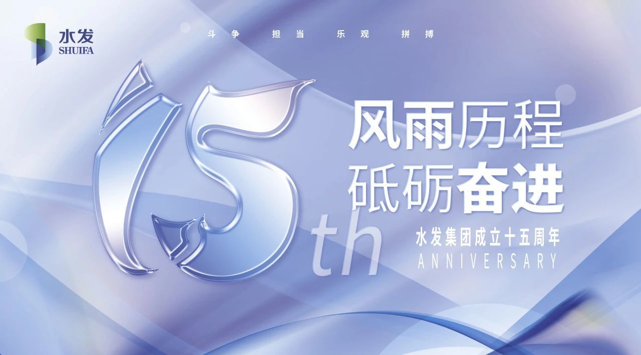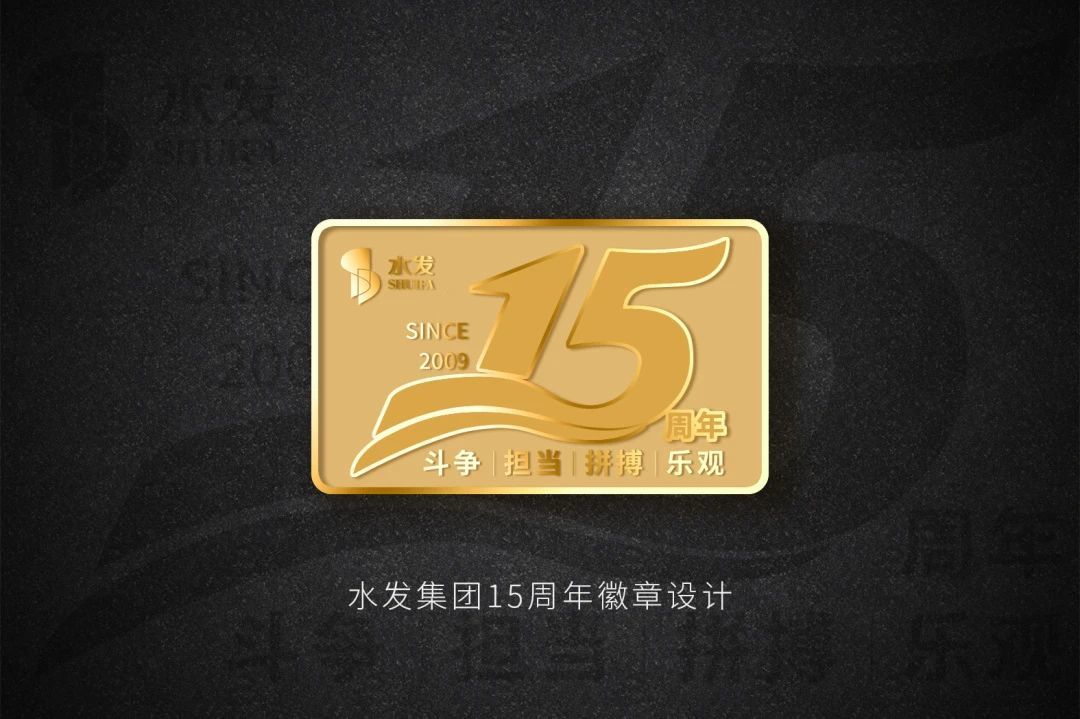 水發(fā)集團因水而興,從2009至2024年已走過15個春秋,數(shù)字“15”結(jié)合流動的水來設(shè)計,并結(jié)合了“斗爭、擔(dān)當(dāng)、拼搏、樂觀”的新水發(fā)精神,金色的徽章更顯品質(zhì)。