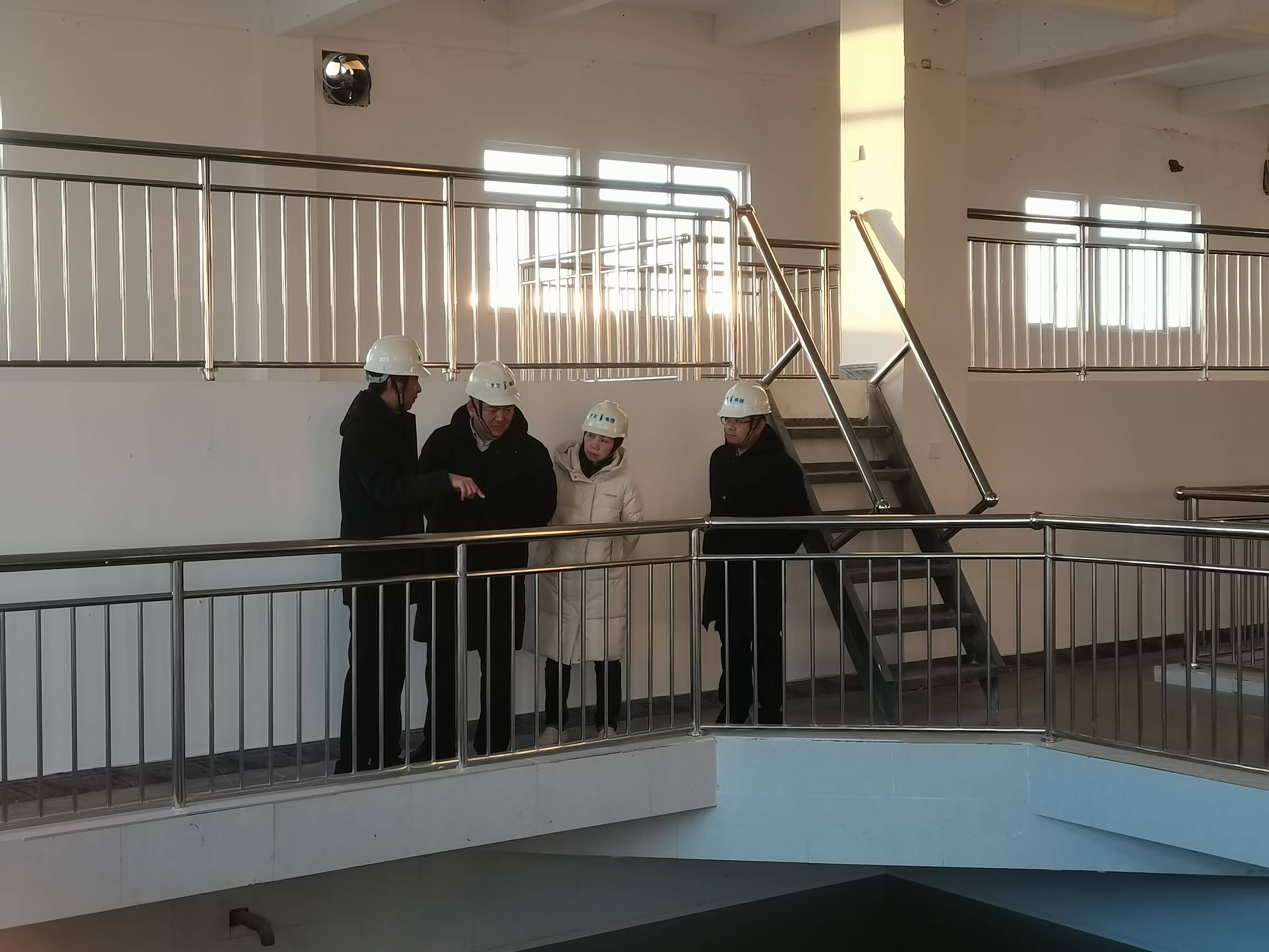 12月26日,水發(fā)集團(tuán)高級專家塵光,水發(fā)水控集團(tuán)黨委委員、副總經(jīng)理陳宇瑾到威海市南海新區(qū)凈水廠項(xiàng)目施工現(xiàn)場開展調(diào)研工作。