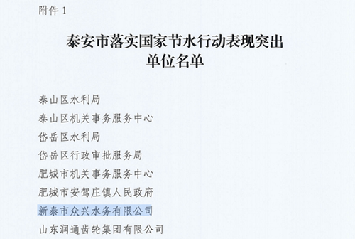 近日,新泰市眾興水務(wù)有限公司在落實(shí)國家節(jié)水行動和化工園區(qū)供水業(yè)務(wù)中表現(xiàn)突出,榮獲兩項(xiàng)榮譽(yù)稱號。