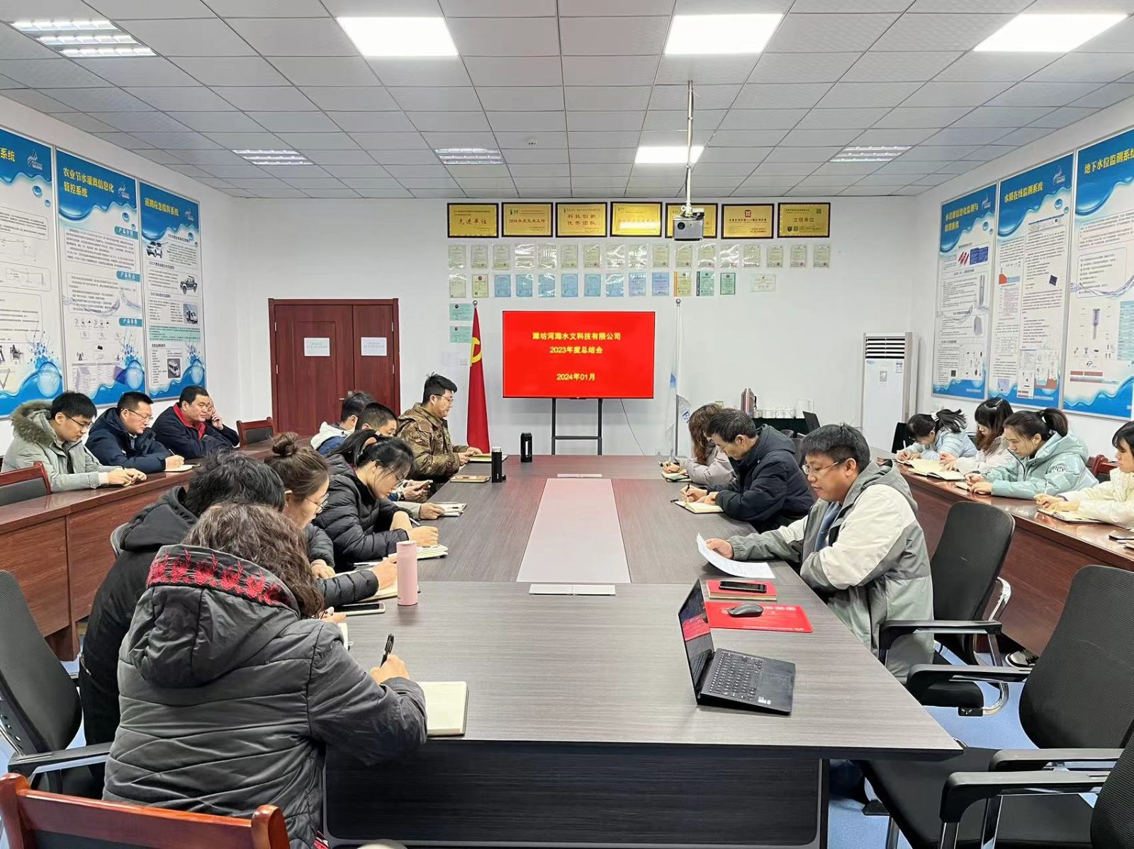 1月2日,濰坊河海水文科技有限公司組織全體員工召開2023年度總結(jié)會,對2023年工作進(jìn)行回顧、反思,對2024年工作進(jìn)行規(guī)劃。董事長龐明濤及全體員工參加會議。